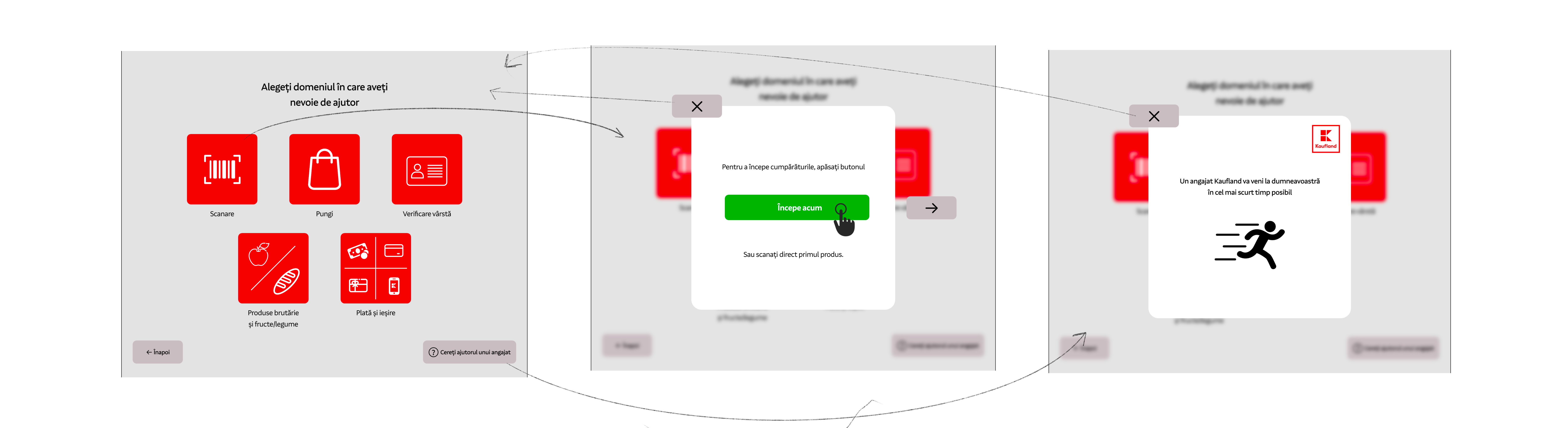 Many of our users told us that one of the scariest thing when you use a self-checkout terminal is the lack of instructions, especially when you are a first-time user. This reminded me of the "Help" button on the SCO menu, which currently only requires the assistance of a Kaufland employee. I think this might turn off some users, who think it's embarrassing not to know how to use the terminal. In addition, one of the business needs was to reduce the interaction between customers and employees.